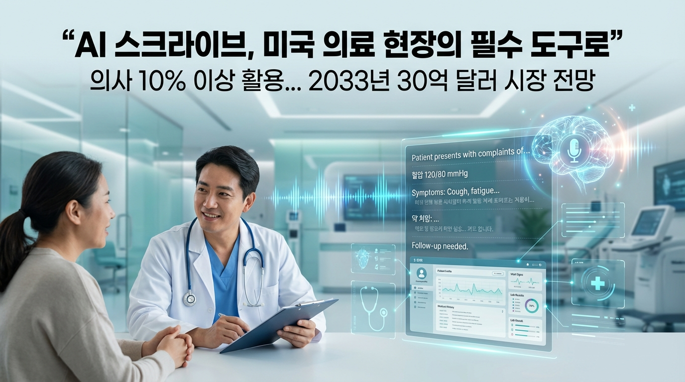 AI 스크라이브(AI scribe)가 미국 의료 현장에서 빠르게 필수 도구로 자리 잡고 있다. 컨설팅 기업 맥킨지에 따르면 이미 미국 의사의 10% 이상이 AI 스크라이브를 활용 중인 것으로 추정된다. Abridge, Ambience, Suki, Nabla, 마이크로소프트 등이 대표적인 기술 기업이며, 전자의무기록(EHR) 기업인 Epic, Athenahealth, 오라클도 자사 플랫폼에 해당 기능을 통합했다.