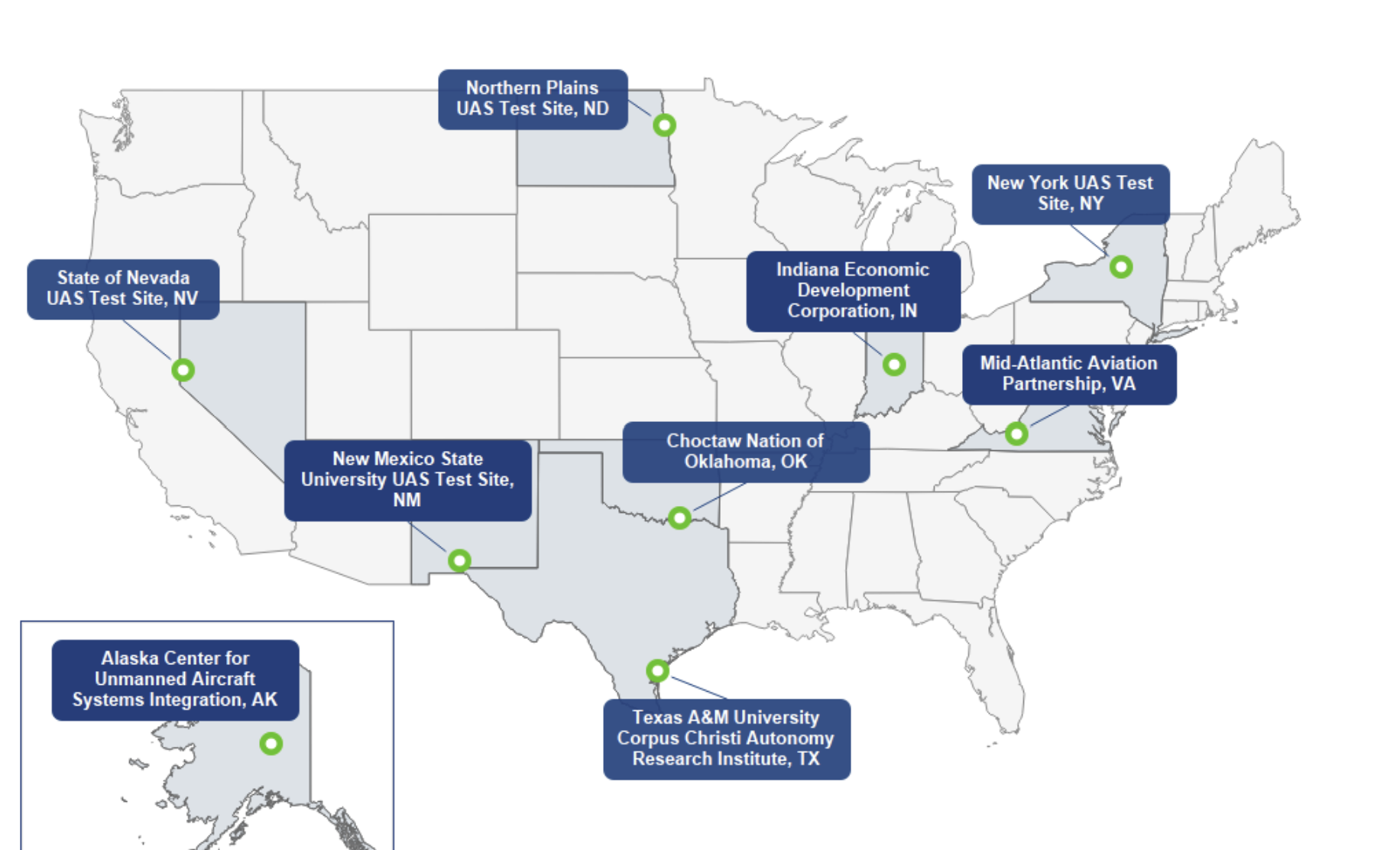 FAA 지정 테스트 사이트 + 민간 비행장 파트너십으로 다주(Multi-State) 드론 생태계 형성